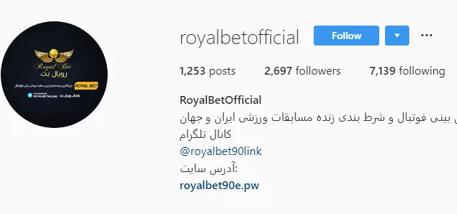 | اینستاگرام | royalbetofficial (غیر فعال) |