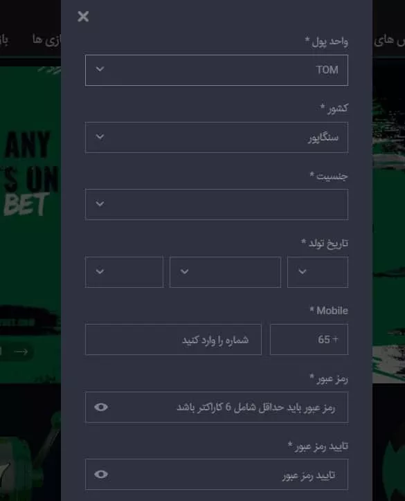 در صفحه ثبت نام اطلاعاتی از قبیل کشور محل زندگی، واحد پول، رمز عبور و شماره همراه از شما درخواست میشود و ثبت نام شما تکمیل میشود.