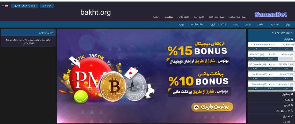 سامان بت (samanbet) سایت شرط بندی تازه تأسیس ایرانی است که از جمله زیرمجموعههای سایت شرط بندی تاک تیک است و امکاناتی مانند پیش بینی ورزشی را در کنار چندین بازی کازینویی دارد.