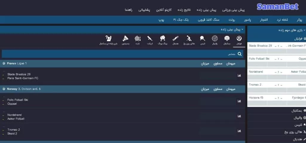 برای علاقمندان به پیش بینی مسابقات ورزشی در رشتههای ورزشی مختلف، سامان بت امکانات قابل توجهی در نظر گرفته است.