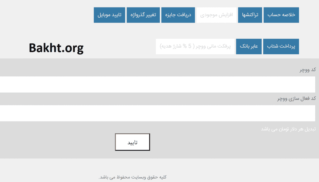 | روشهای واریز | درگاه، کارت، پرفکت مانی |
