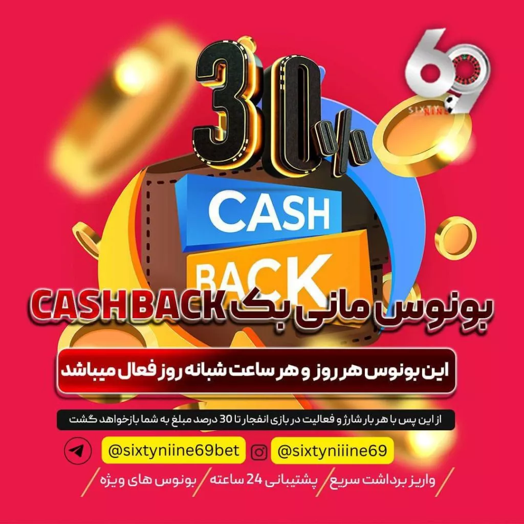 - بونوس ۳۰٪ کش بک: بازگشت تا ۳۰٪ از مبلغ باخت به حساب کاربر