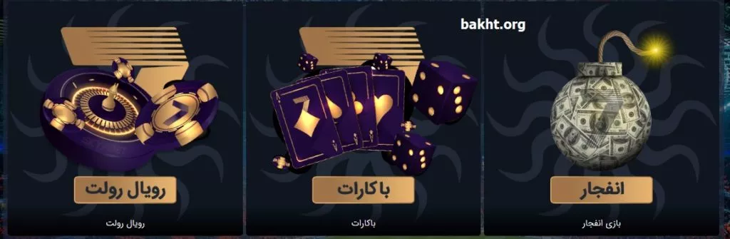 | بازیهای اصلی | انفجار، پیش بینی فوتبال، رولت، بلک جک |