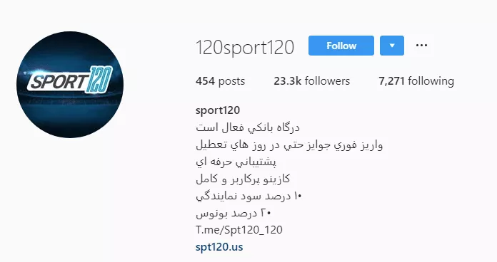 صفحه اینستاگرام اسپورت 120، حدود 24 هزار دنبال کننده در اینستاگرام دارد. این سایت به ازای هر واریز پرفکت مانی 20 درصد بانس اعطا می کند.