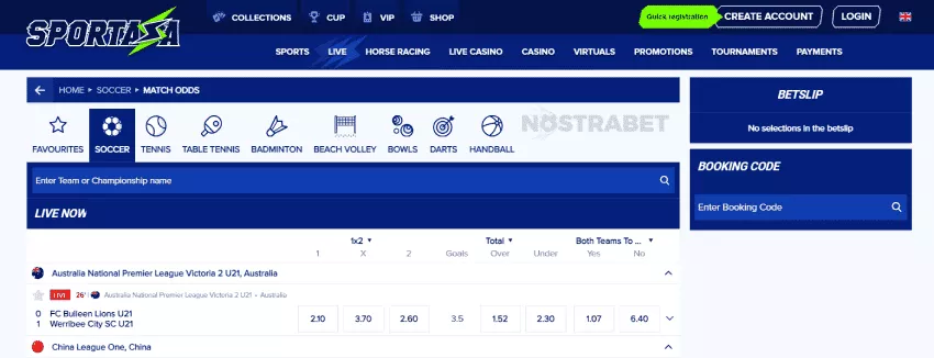 سایت شرط بندی اسپورتازا بیش از صد رویداد ورزشی را به طور روزانه ارائه میکند. فوتبال یکی از محبوب ترین رشتههای ورزشی این سایت محسوب میشود.