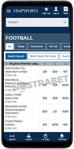 فوتبال یکی از محبوب ترین ورزشها در بریتانیا است و سایت استار اسپورتس هم به همین خاطر دارای بخش پیش بینی ورزشی با تمرکز ویژه روی مسابقات فوتبال است.