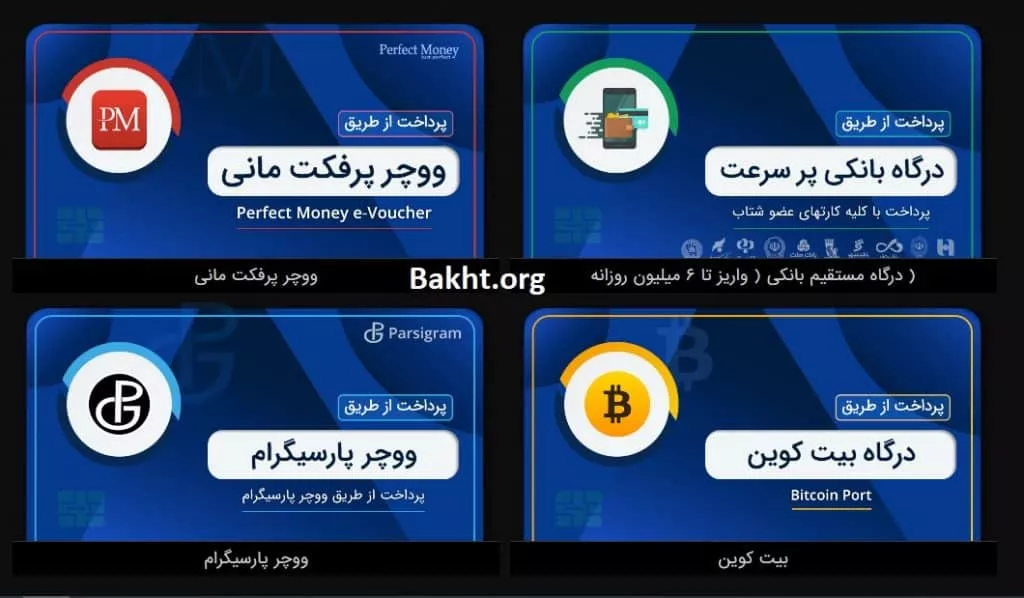 | روشهای واریز | درگاه، کارت، پرفکت مانی |