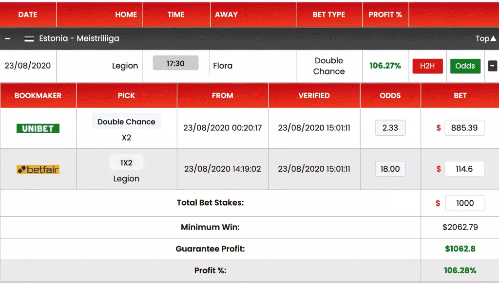 در منوی بالای صفحه، بخشی با نام آربیتراژ در دسترس است که به صورت روزانه آپدیت میشود. تعداد بازیهای پیشنهادی زیاد نیست اما سود خوبی را نصیب شما میکند.
