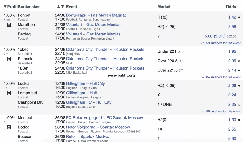 مجموعه Surebet.com، بخشی برای شور بت به صورت رایگان دارد. این پیشنهادات همه ورزشها را شامل میشوند.