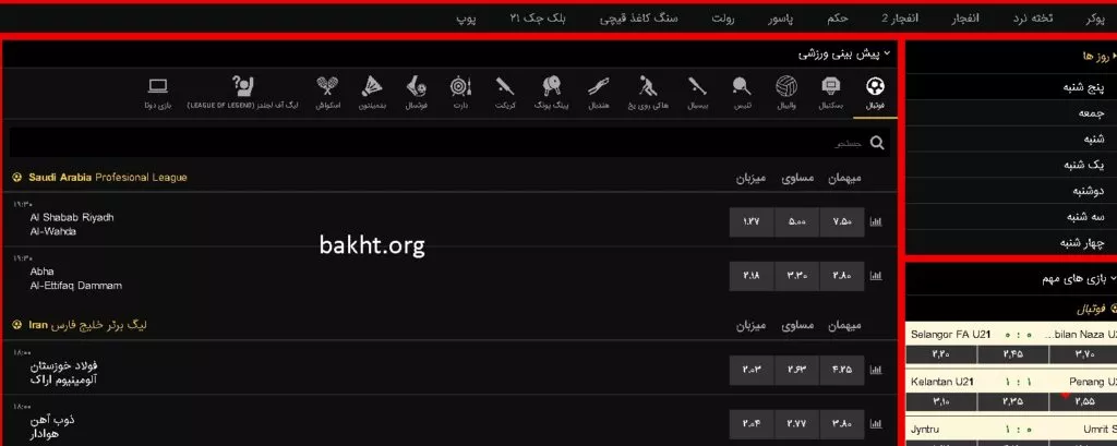 امکان پیش بینی به صورت زنده و یا پیش بینی قبل از بازی در تاس نود وجود دارد. برای رویدادهای مختلف ورزشی در این سایت گزینههای متعددی برای پیش بینی قرار دارد و تنوع بالایی از حیث آپشن و گزینهها وجود دارد.