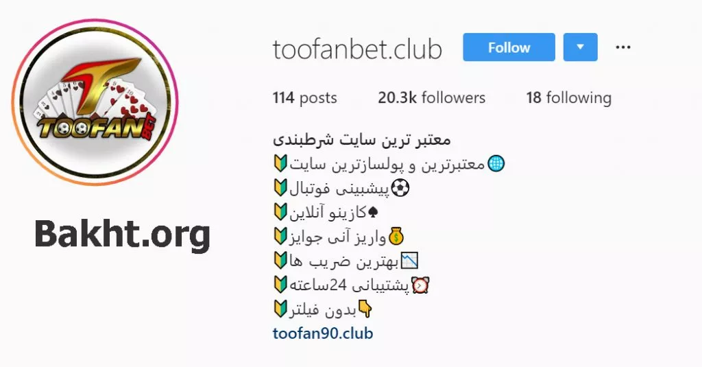 | اینستاگرام | toofanbet.club (غیر فعال) toofanbet (تبلیغ گلف بت) |