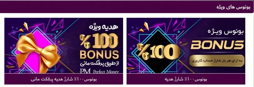 این سایت برای تشویق کاربران خود دو بونوس ویژه در نظر گرفته است.
