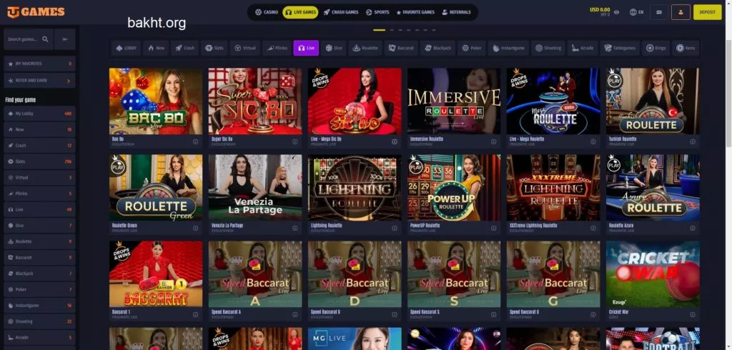 انواع بازی انفجار، بازی اسلات، بازی با تاس، رولت، بازی باکارات، بلک جک و بازی پوکر در این سایت در دسترس است.