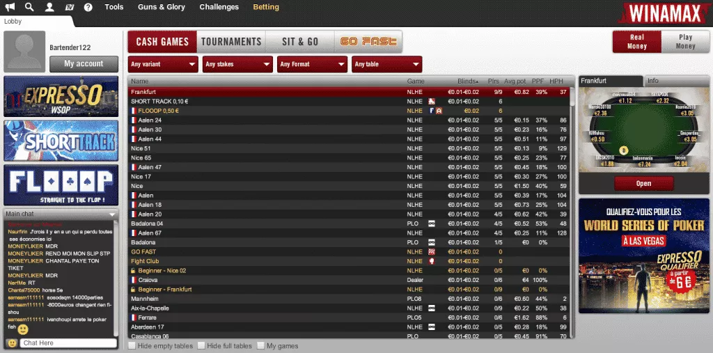 فرانسه با توجه به ممنوع کردن پوکر آنلاین جز معدود کشورهای اروپایی است که این سایت را محدود کرده است. با این وجود این سایت از جمله محبوب ترین سایتهای پوکر در اروپا محسوب میشود.