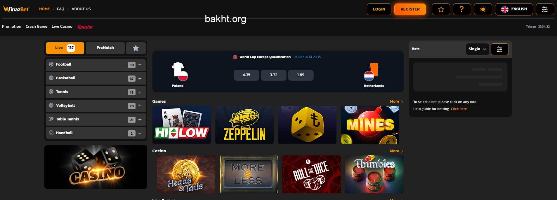 انواع شرط تکی و شرط میکس را میتوانید در این سایت ثبت کنید. همچنین گزینههای متعددی برای شرط بندی از جمله بالا و پایین و یا هندیکپ در این بخش در دسترس است.