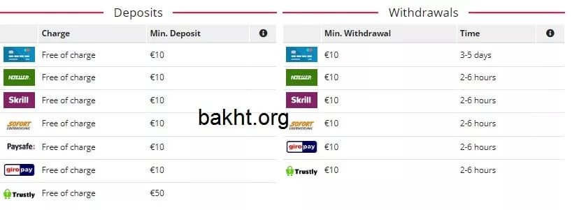 برای برداشت جایزه در سایت وین مسترز، حداقل مبلغ برداشت 10 یورو است و ممکن است بین 2 تا 6 ساعت و یا 3 تا 5 روز واریز به طول بیانجامد.