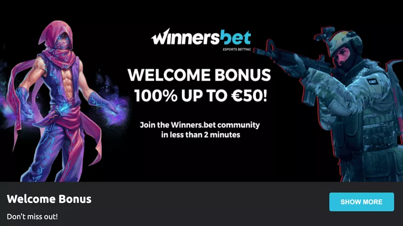 انتخاب شما برای سایت شرطبندی ورزشهای الکترونیکی فقط با کیفیت سایت و خدمات تعیین نمیشود، بلکه به چیزی بیشتر نیاز دارید. اغلب، این پاداشها هستند. تبلیغات و پاداشها به شما برای استفاده از یک پلتفرم به جای دیگری پاداش میدهند. این میتواند از شرطبندیهای رایگان، مسابقات واریز، هر چیزی که به شما امکان میدهد کمی بیشتر به صورت رایگان بازی کنید، باشد. ورزشهای الکترونیکی سایت Winners.bet شما را در این حوزه ناامید نمیکند. پاداش خوش آمدگویی Winners.bet یک مسابقه واریز 100٪ تا 50 یورو است. بنابراین اگر 50 یورو واریز کنید، میتوانید با 100 یورو بازی کنید.