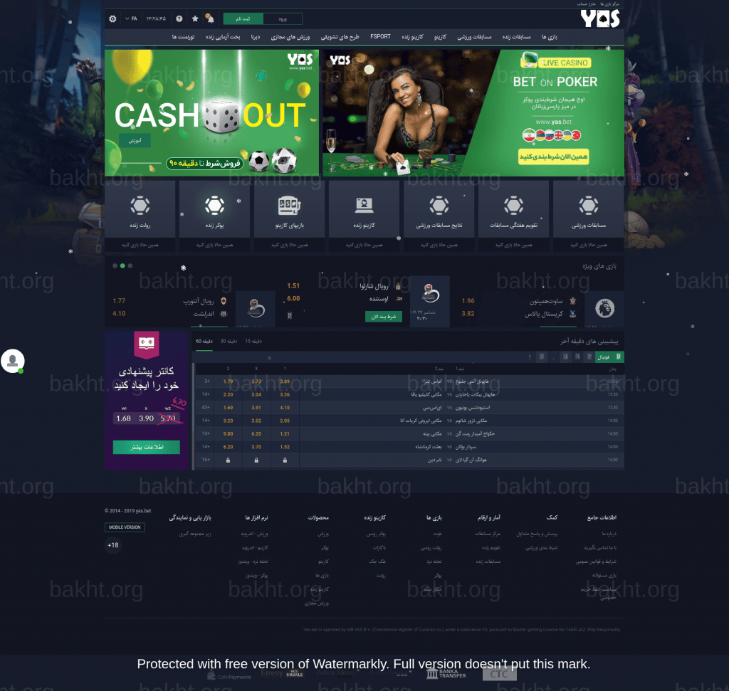 سایت شرط بندی یاس بت (انگلیسی: Yas Bet) یک نمایندگی به زبان فارسی از شرکتی در کشور کوراسائو (Curacao) است. به نظر میرسد بیشتر سایتهای شرط بندی که از این کشور لایسنس فعالیت دریافت کردهاند، نمایندهی یک شرکت واحد هستند. در هر صورت یاس بت در چند سال اخیر توانسته به یک سایت معتبر شرط بندی تبدیل شود و بررسی اعتبار یاس بت، هدف ما در این نوشته است. سایت با پلتفرمی متفاوت، امکانات زیادی از جمله پیش بینی ورزشی و بازیهای کازینو را در اختیار مخاطب قرار میدهد. مجله بخت