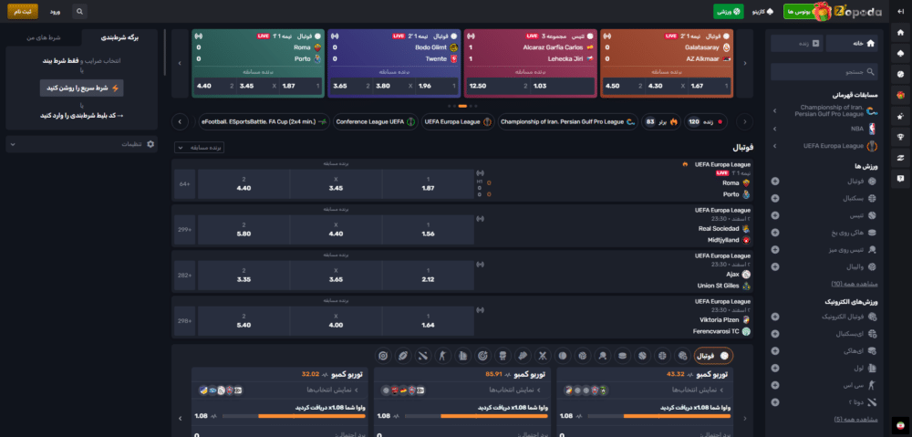 پس از انتخاب بازیهای مورد نظر خود، فرم در سمت چپ صفحه قرار میگیرد که میتوانید فرم شرط خود را ثبت کنید.در حال حاضر رشتههای ورزشی زیر در زوپودا بت قابل پیش بینی هستند: