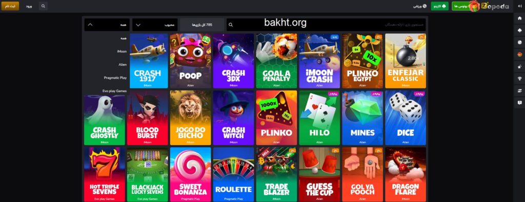 بیشتر از 700 بازی کازینویی در زوپودا بت ارائه شده است. در بازیهای تصادفی این سایت انواع بازی انفجار، از جمله انفجار کلاسیک و کرش رویال ارائه میشود.