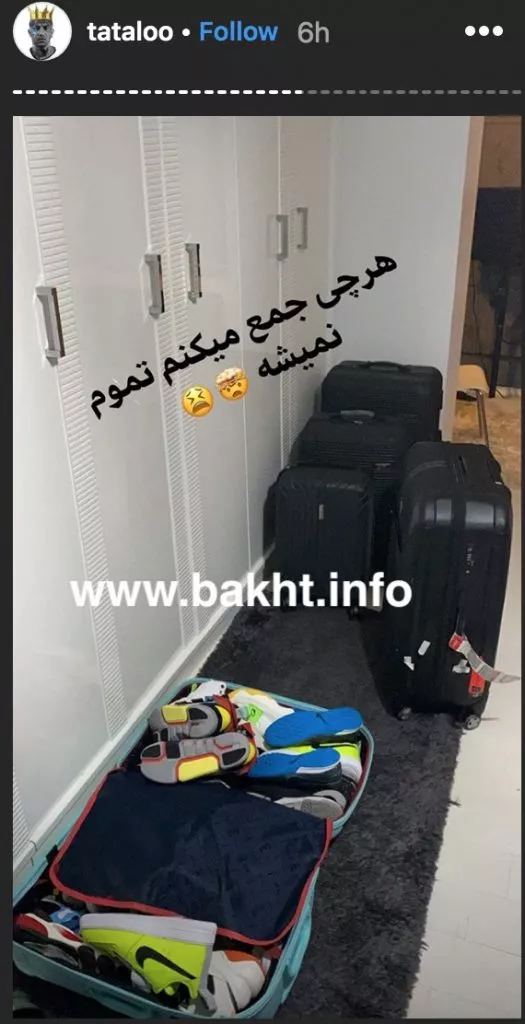امیر تتلو، معشوقه دنیا جهانبخت (از پایههای اساسی سایت مونتیگو) که طی ماههای اخیر به خاطر درگیری با پویان مختاری، مدیر سایت حضرات هم جنجال آفریده بود، دیشب اعلام کرد که قصد دارد به لندن برود. تتلو حتی عکسی از چمدانهایش را هم منتشر کرد.