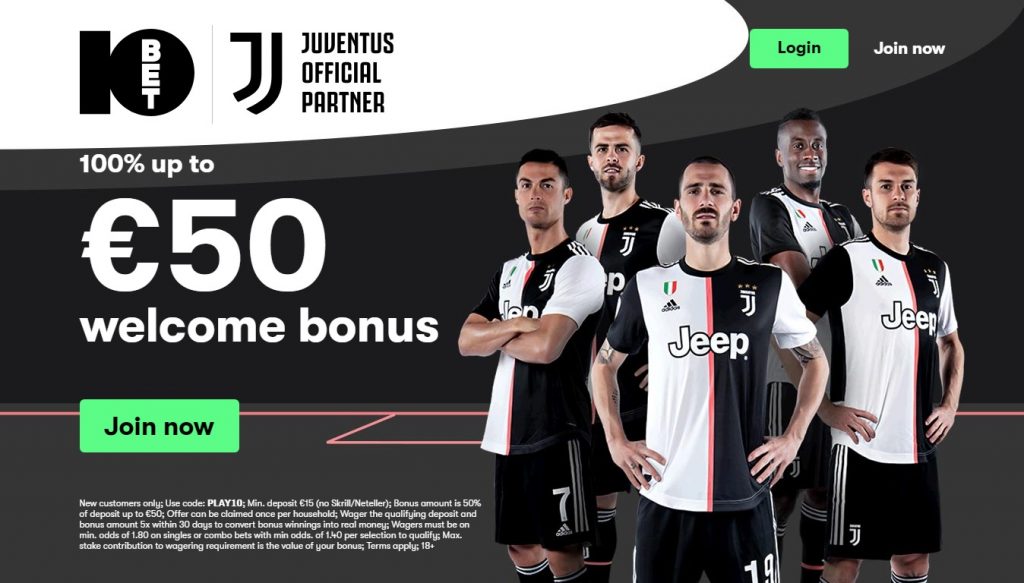 قهرمان سالهای اخیر سری آ، یوونتوس با سایت 10Bet قرارداد اسپانسرینگ منعقد کرد. این قرارداد سه ساله، به وبسایت 10 بت اجازه میدهد که با تصویر بازیکنان یوونتوس، برای هواداران این باشگاه تبلیغات شرط بندی تولید کند.