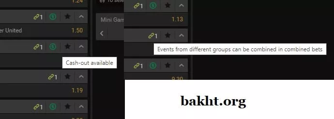 از بخش‌های جالب توجه بت برو در صفحه شرط بندی، دو آپشنی است که در عکس زیر می‌بینید. آنها برای برخی شرط‌ها با یک آیکون سبزرنگ، امکان کش-اوت را گذاشته‌اند. یعنی می‌توانید در صورتی که بخواهید، پیش از شروع بازی شرط خود را کنسل کنید. همینطور میکس را برای آیتم‌هایی در نظر گرفته‌اند که در یک دسته جا نگرفته‌اند.