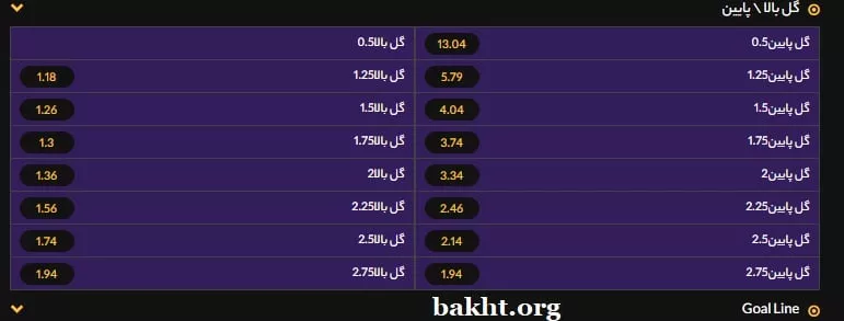 | شرط اور 2.5 | باخت تمام پول | باخت تمام پول | برد با ضریب 1.74 |