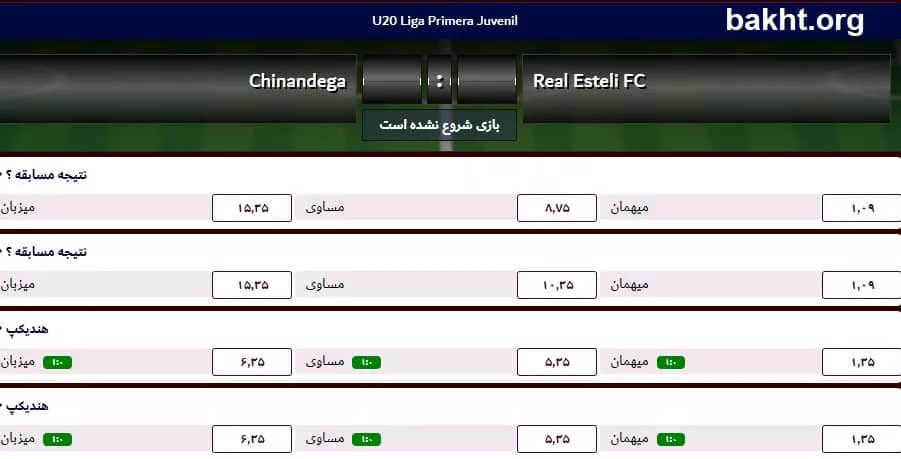 این صفحه شرط بندی یک مسابقه در بت لند است. اطلاعات خاصی از فرم دو تیم در دست نیست. چیزی حدود 45 آیتم شرط بندی داریم که عدد نسبتا کمی است. شرط بندی بالا و پایین به 2.5 محدود شده است. برخی آیتمها هم تکراری هستند.