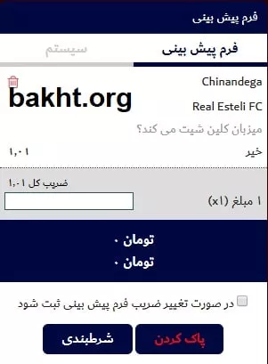 نمیتوانید از یک مسابقه میکس بسازید. به محض اضافه کردن دومین آیتم، آیتم اول از فرم پیش بینی حذف میشود. حتی نمیتوانید شرط بندی سینگل همزمان داشته باشید.