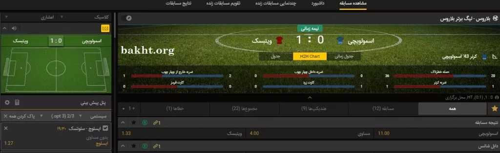 این صفحه شرط بندی لایو در برو وین است. اطلاعات خوبی داریم. شمایل کلی بازی را داریم. آمارها هستند. در زمان ایجاد موقعیت، متوجه میشویم.