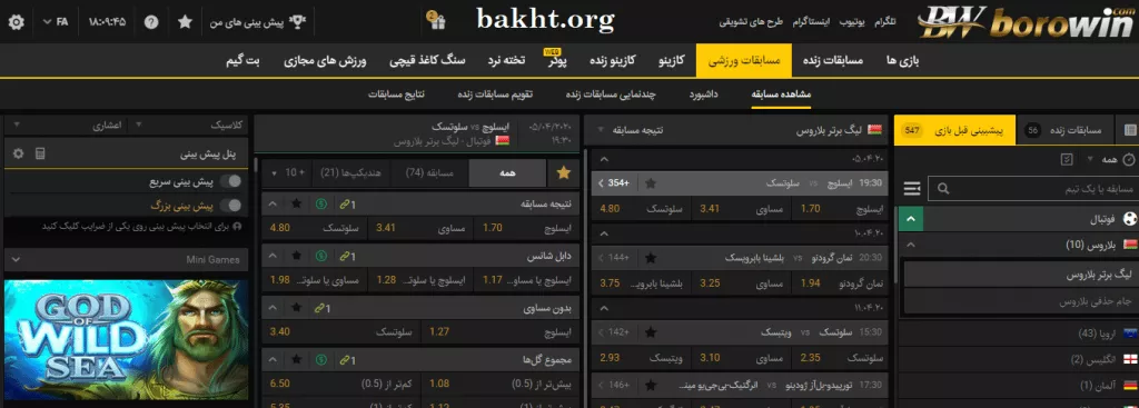این صفحه شرط بندی ورزشی برو وین است. توانایی اعمال تغییرات در تم و شیوه ضرایب شرط بندی را دارید. همینطور دسته بندی ورزشها و تاریخ نیز موجود است.