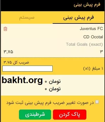 در های بت نمیتوانید از یک مسابقه میکس بسازید. وقتی دومین آیتم اضافه میشود، آیتم اول حذف میشود. همینطور نمیتوانید همزمان چند شرط سینگل از یک مسابقه داشته باشید.