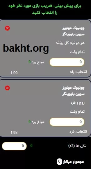 فرم پیش بینی در این سایت، اینگونه است. نمیتوانید از یک مسابقه میکس بسازید. با این حال اجازه دارید که شرط بندی سینگل متعدد داشته باشید.