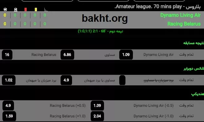 شرط بندی لایو در پرشین 360 به این صورت است. اطلاعات زیادی داده نمیشود. حتی اطلاعاتی که در سمت چپ-بالا میبینید به نظر غلط میرسد.