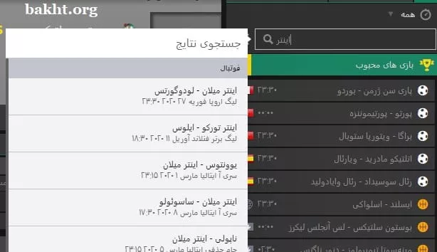 برای پیدا کردن لیست بازیها هم در پین باهیس کمی در ابتدا به مشکل میخورید. صفحه اصلی آن کمی شاید برای شما گمراه کننده باشد اما در سمت راست، اگر روی توپ فوتبال کلیک کنید، میتوانید در کادر سرچ هر مسابقهای که خواستید را جستجو کنید و با لیست بازیهای تیمی که سرچ کردهاید روبرو شوید. بازی امشب اینتر (راهنمای پیش بینی اینتر) به تعویق افتاده اما همانطور که میدانید بازیهای هفته آینده نیز از همین حالا آماده شرط بندی است.
