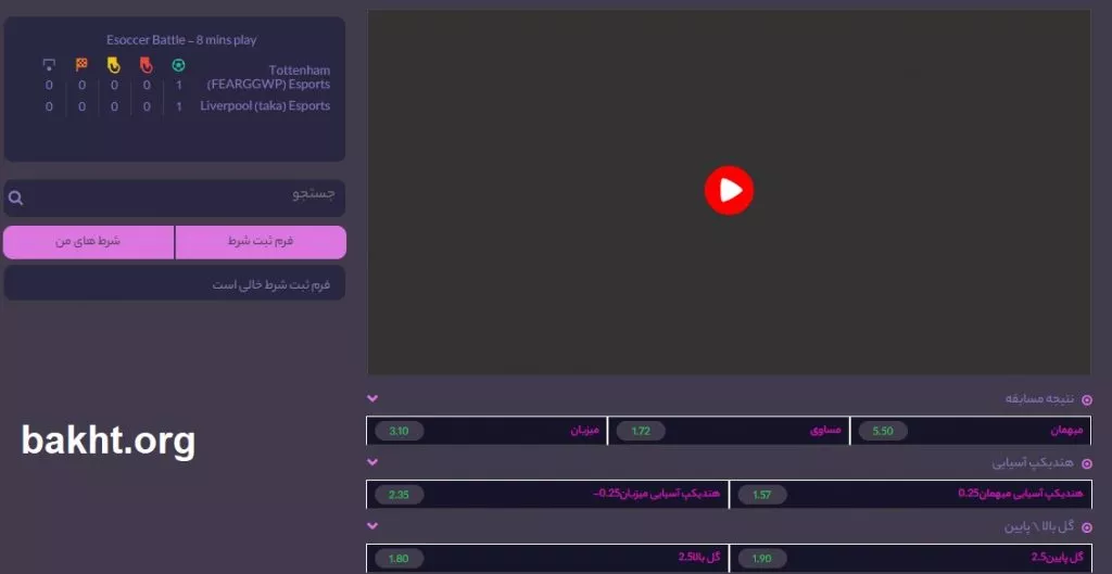 سراغ شرط بندی زنده رفتیم و حالا به شرط بندی روی مسابقات esports محدود میشود. با وجود اینکه تعداد آیتمهای شرط بندی محدود است اما پخش زنده مسابقه را داریم. وقتی روی پلی کلیک میکنید، به صفحه دیگری میروید که مسابقه با تصویری از بازیکنان پخش زنده میشود.