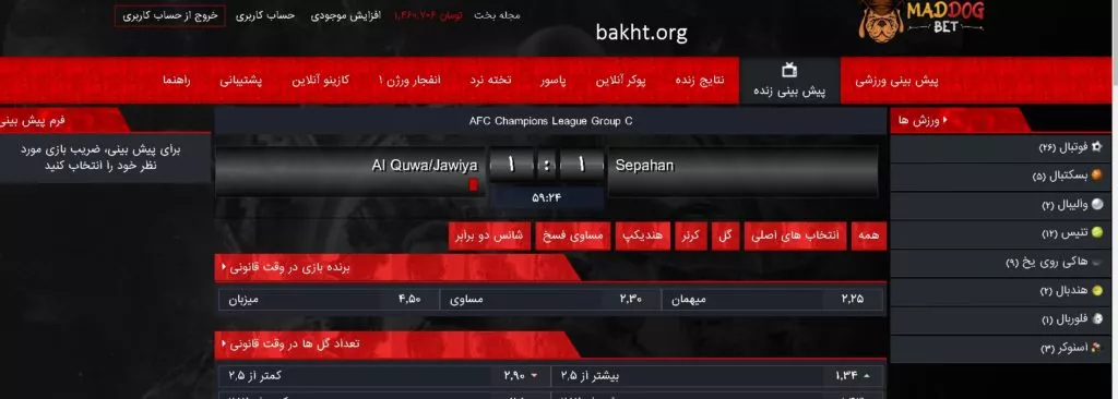 مد داگ بت (Maddogbet) سایت شرط بندی ایرانی با امکاناتی از جمله پیش بینی ورزشی و کازینو که از جمله نمایندگان سایت شرط بندی بت بال 90 است.