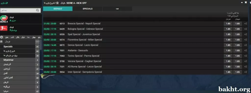 شرط بندی فوتبال در بت دایجست، تفاوت چندانی با سایر سایتهای شرط بندی ندارد اما از نظر تنوع، جالب توجه است. برای مثال اینجا بازیهای سری آ را انتخاب کردهایم و بازیهای دو روز آینده را نیز به ما نشان میدهد.