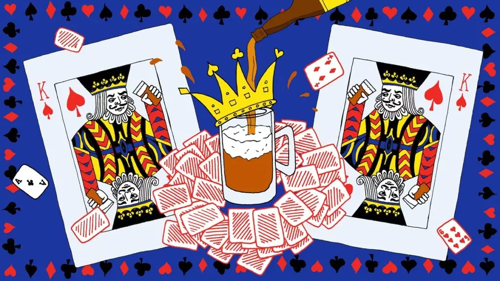 برای این بازی کلاسیک، به یک دسته ورق بازی، یک لیوان و مقدار زیادی آبجو نیاز دارید. لیوان در وسط بازیکنانی که دور آن نشستهاند قرار میگیرد. بازیکنان به نوبت یک ورق انتخاب میکنند که هر کدام به یک عمل مشخص نیاز دارند. در اینجا خلاصه آن آورده شده است: