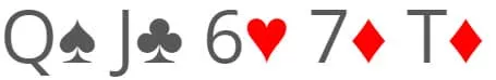 در چیدمان هایی که شامل Q-J-T می شود، ترکیب های متعدد شما از A-K هم استریت می سازد. این مساله، ضریب ضمنی شما با 8-9 را به میزان قابل توجهی کم می کند، چون A-K همیشه در طیف شما قرار دارد و رقیب هم این را می داند. از این رو، باید در چنین چیدمان هایی با فولد کردن بسیاری از دست های نزدیکش، غیرتهاجمی تر بازی کند و سودآوری دست استریت شما با 8-9 را سخت تر نماید.