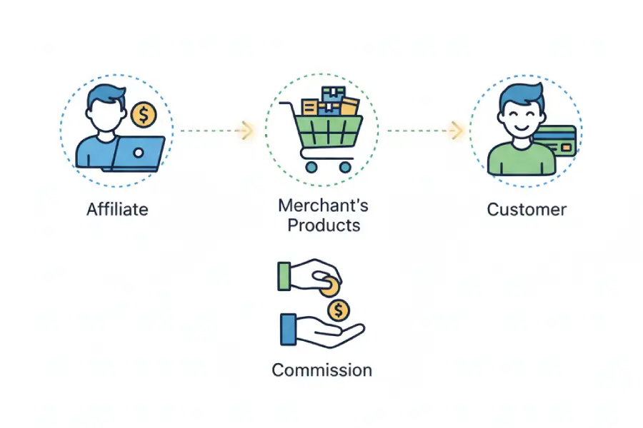 Merchant (فروشنده / پذیرنده): یک کسبوکار آنلاین که کالا یا خدماتی را بازاریابی کرده و میفروشد. فروشندگان برای ترغیب مصرفکنندگان به خرید، ثبتنام، پر کردن فرم یا بازدید از سایت، برنامههای همکاری در فروش (Affiliate Programs) ایجاد میکنند.