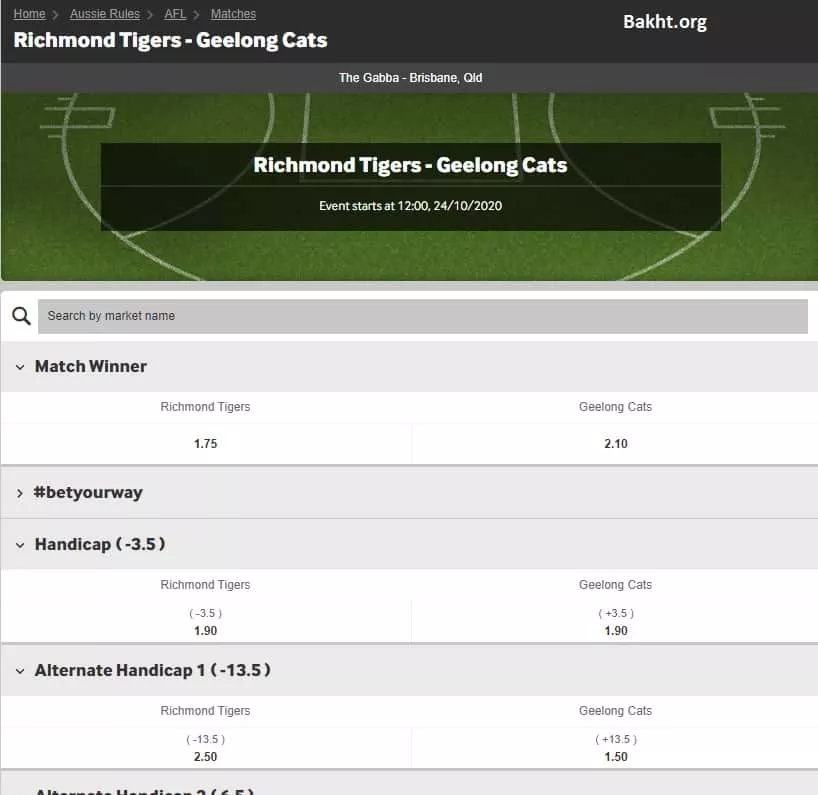 - Line: چیزی شبیه به هندیکپ است. اینجا میتوانید +10 را برای تیمی که شانس کمتری برای برد دارد انتخاب کنید. مثلا فرض کنید در رقابت دو تیم گیلانگ و ریچموند، شانس را با برد گیلانگ در شرایط +10 بدانید. یعنی گیلانگ حتی اگر با 9 اختلاف بازنده باشد، شما برنده خواهید بود. چون در همان ابتدا، ده گل اضافه به گیلانگ داده بودند که با وجود آنها، در پایان با یک اختلاف برنده شد.