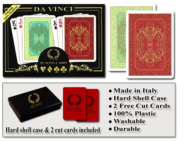 کارتهای شرکت ایتالیایی داوینچی، را به عنوان بادوامترین در نظر میگیرند. آنها حتی گارانتی تعویض مادامالعمر برای کارتهای خود دارند. محصولات این شرکت از 7 دلار شروع میشود. عمده کارتهای این شرکت به صورت پکهای دوتایی است. از مدلهای آن میتوان به روت (Ruote)، پرستیژ (Prestige)، کلاسیکو (Classico)، ونیز (Venezia) و ایرانی (Persiano) اشاره کرد.