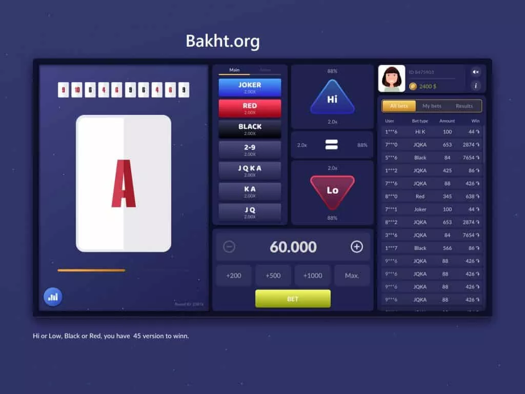 شما باید مبلغ شرط خود را تعیین کنید، یک عدد احتمالی انتخاب کنید و پیش بینی کنید که عدد بازی از عدد انتخاب شده کمتر است یا بیشتر.