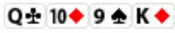 شرط کوچک کال می کند. کات آف 13.30 دلار شرط می کند. بازیکن باتجربه باتن تصمیم به کال می گیرد و شرط کوچک اقدام به فولد می کند. بعد از رو شدن فلاپ رنگین کمانی (غیرهمخال) دوستدار کارت های برادوِی (با نوشتار Broadway به یک استریت از 10 تا آس گفته میشود و میتواند به هر کدام از کارتهای ده تا آس هم اطلاق شود)، شرط بندی کات آف نشان از در اختیار داشتن دست خوبی دارد.