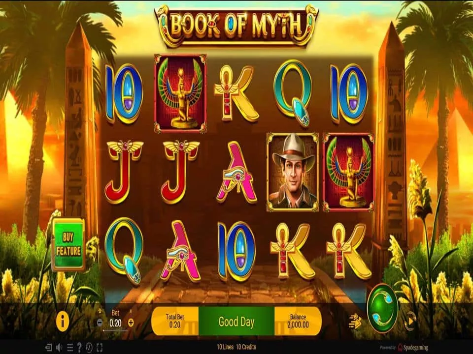 کتاب افسانه (Book of Myth) که در مارس 2020 منتشر شد، یک بازی کازینوی آنلاین نسبتاً جدید است. با این حال، بازی آن شبیه به سایر بازیهای تولید شده توسط Spadegaming است. با ده خط برد ثابت، پنج گردونه و سه ردیف – میتوانید از یک تا پنج سکه در هر خط انتخاب کنید. این سکهها میتوانند از 0.01 تا 10 اعتبار باشند. وقتی صحبت از نمادها به میان میآید، با ارزشترین نماد ما کاوشگر، یعنی خود باستان شناس است.