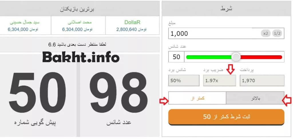 در این بازی شما دو عدد پیش روی خود میبینید، عددی که خودتان انتخاب می کنید و عددی که بازی معرفی کرده است.
