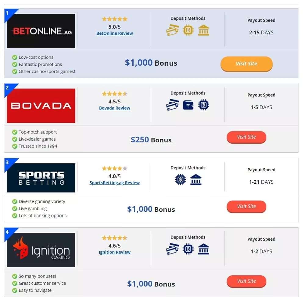 SportsBetting.ag اتاق پوکر دیگری است که کارشناسان قمار آنلاین ما به خوانندگان ما پیشنهاد میکنند آن را بررسی کنند. دلایل زیادی برای ثبت نام در این سایت پوکر وجود دارد، از جمله این واقعیت که ارز رمزنگاری شده را به عنوان روشی برای شرطبندی پذیرفته است. همچنین یک بوکمیکر ورزشی آنلاین عالی دارد که میتوانید بین بازیهای پوکر از آن استفاده کنید.