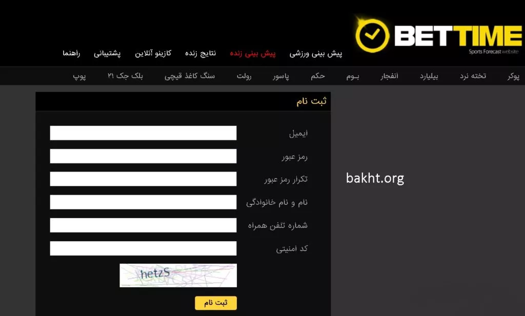 ثبت نام در بت تایم نود
